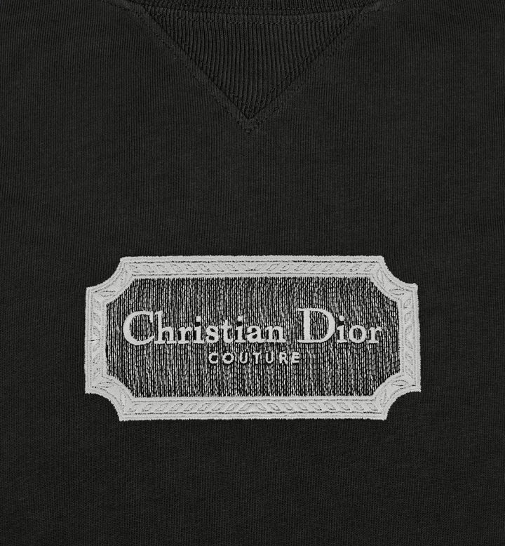 The T-shirt is a relaxed and modern piece. Crafted in white cotton jersey, it features a Christian Dior Couture signature in a contrasting embroidered frame on the chest. Thanks to its relaxed fit and ribbed crew neck with V-neck topstitching, the T-shirt will pair effortlessly with any jeans for a contemporary look.