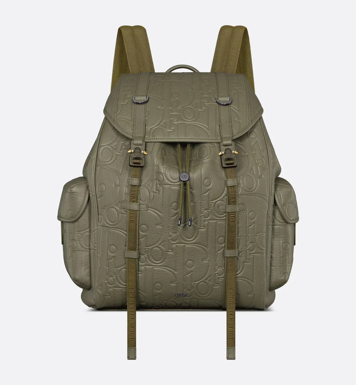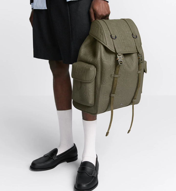 New for Fall 2024, Kim Jones releases the newest Dior Hit the Road backpack, offering a modern take on the House's couture spirit. Displaying the virtuosity of Dior's ateliers, the Dior Gravity leather showcases the iconic motif delicately embossed on black calfskin and accented by black grained calfskin detailing and the Dior signature on the front. Equipped with two Christian Dior nylon jacquard straps, it features a spacious main compartment with a flap, as well as two magnetic flap pockets on the sides. The practical large backpack will complete casual outfits.