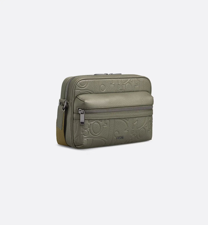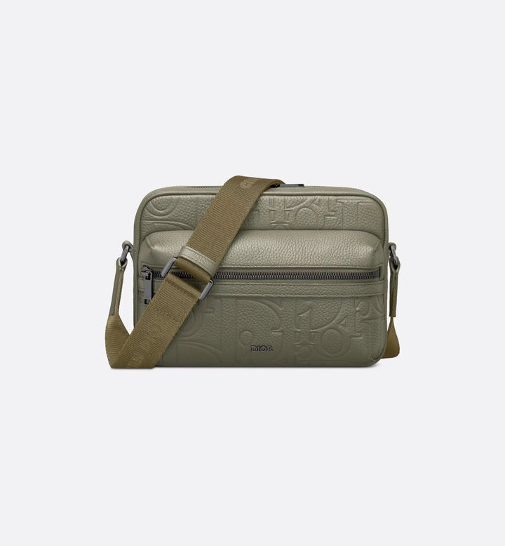 New for Fall 2024, the Rider 2.0 zipped messenger bag is a practical and compact creation ideal for daily use. Displaying the virtuosity of the House's ateliers, the Dior Gravity leather showcases the iconic motif delicately embossed on khaki calfskin and is accented by tonal grained calfskin detailing and the Dior signature on the front. The zip compartment and front pocket keep belongings within reach, while the adjustable strap allows the bag to be worn over the shoulder or crossbod.